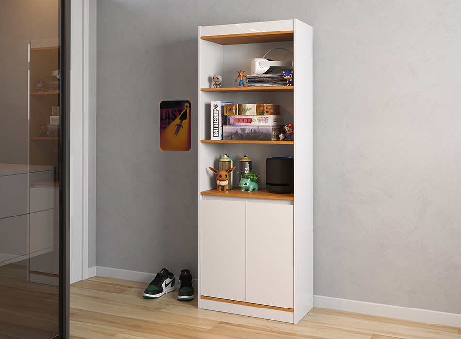 Esse armário versátil é a solução perfeita para manter seu ambiente organizado e elegante. Com nichos abertos para exposição de objetos decorativos e compartimentos fechados para itens pessoais, ele une funcionalidade e design moderno. Ideal para quartos, salas ou escritórios, oferece praticidade e charme em qualquer espaço. Uma escolha inteligente para manter tudo em ordem com um toque de personalidade.