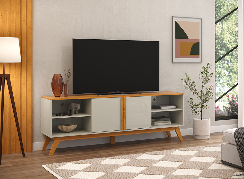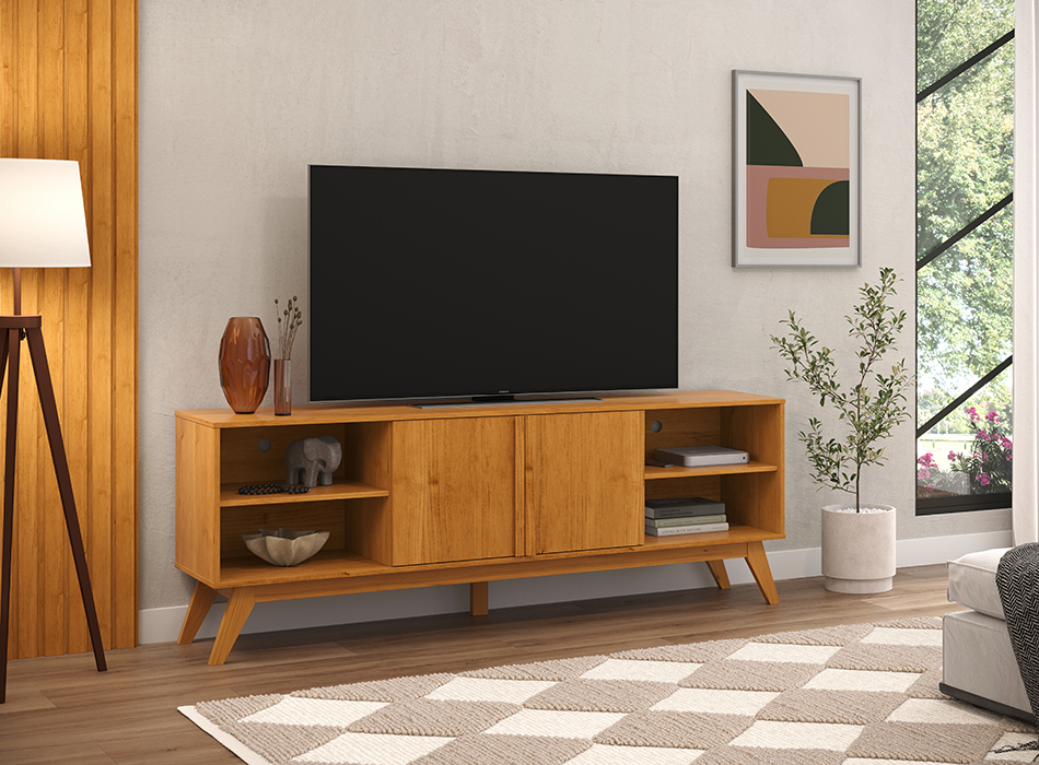Equilíbrio entre funcionalidade e estilo para compor ambientes acolhedores e bem planejados. O Rack Urban conta com puxador em MDF revestido, que mantém a harmonia visual da peça. O sistema de fechamento suave das portas com tecnologia Slow Motion proporciona mais conforto e durabilidade no uso diário. Seus pés em madeira maciça garantem resistência e estabilidade, enquanto os espaços inteligentes facilitam a organização e valorizam a experiência no ambiente.